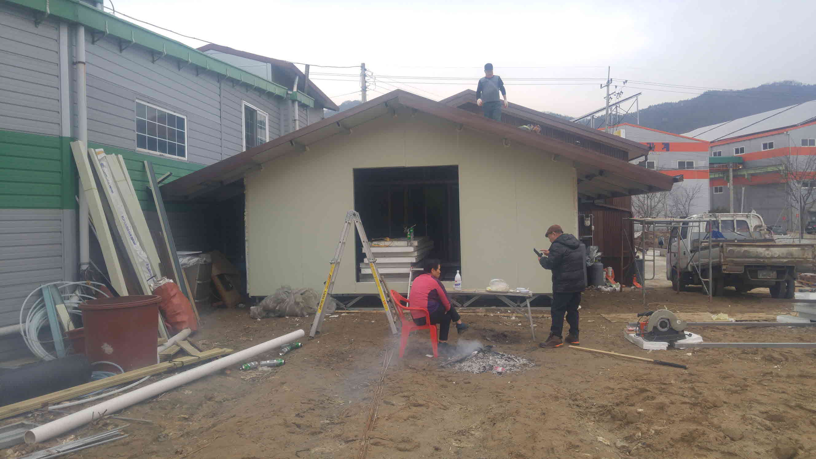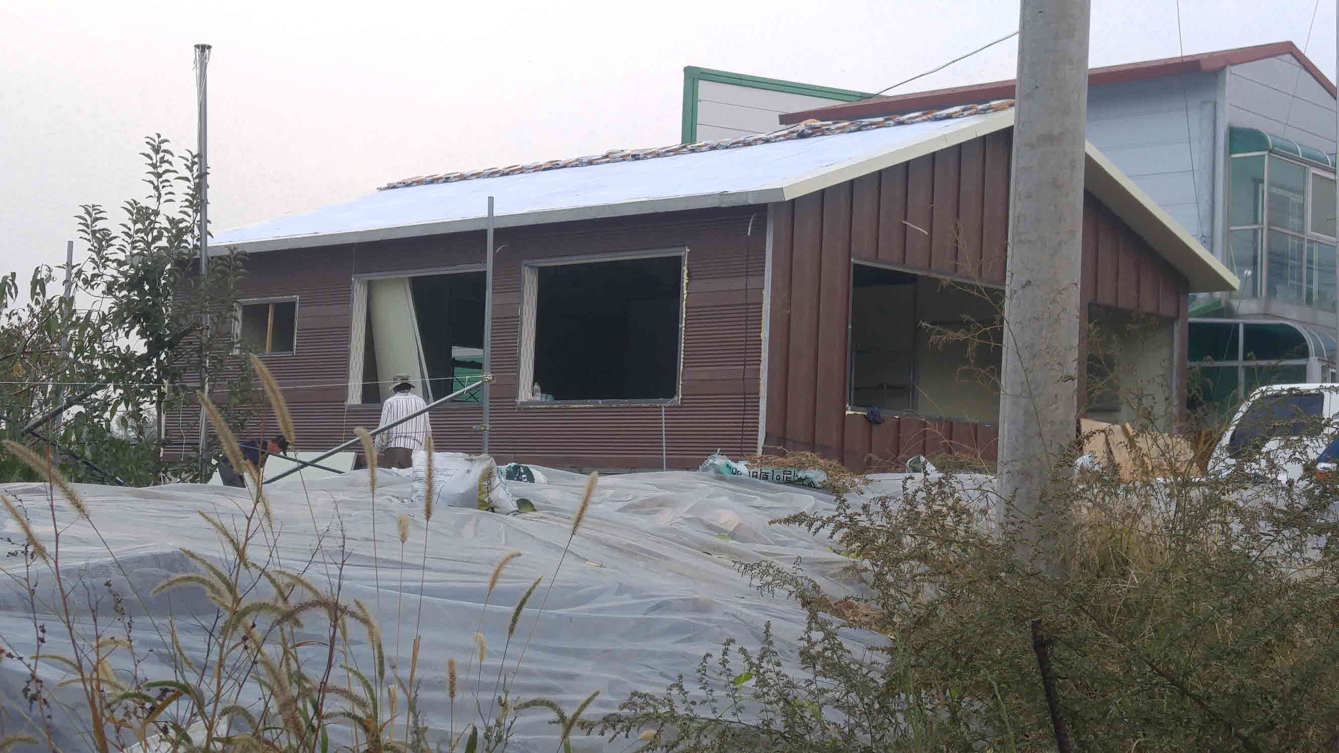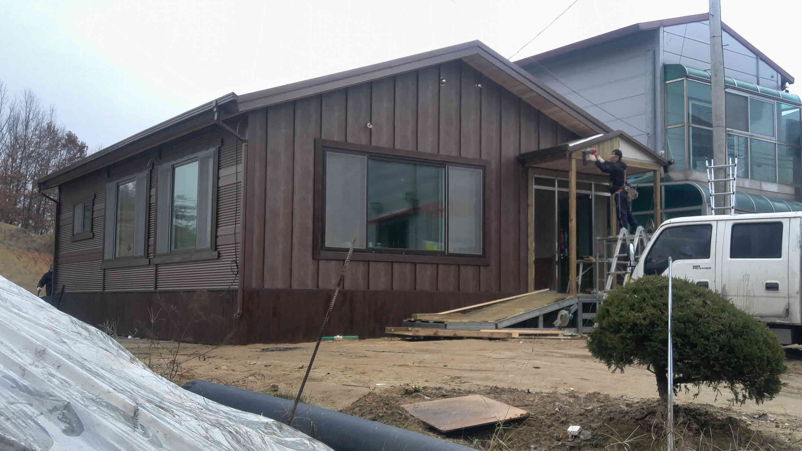 지붕을 씌우고 창문을 설치하니 제법 집같아 보이네요.