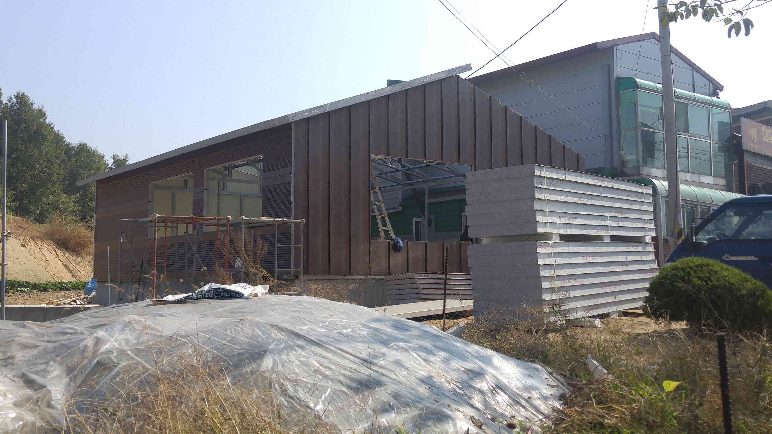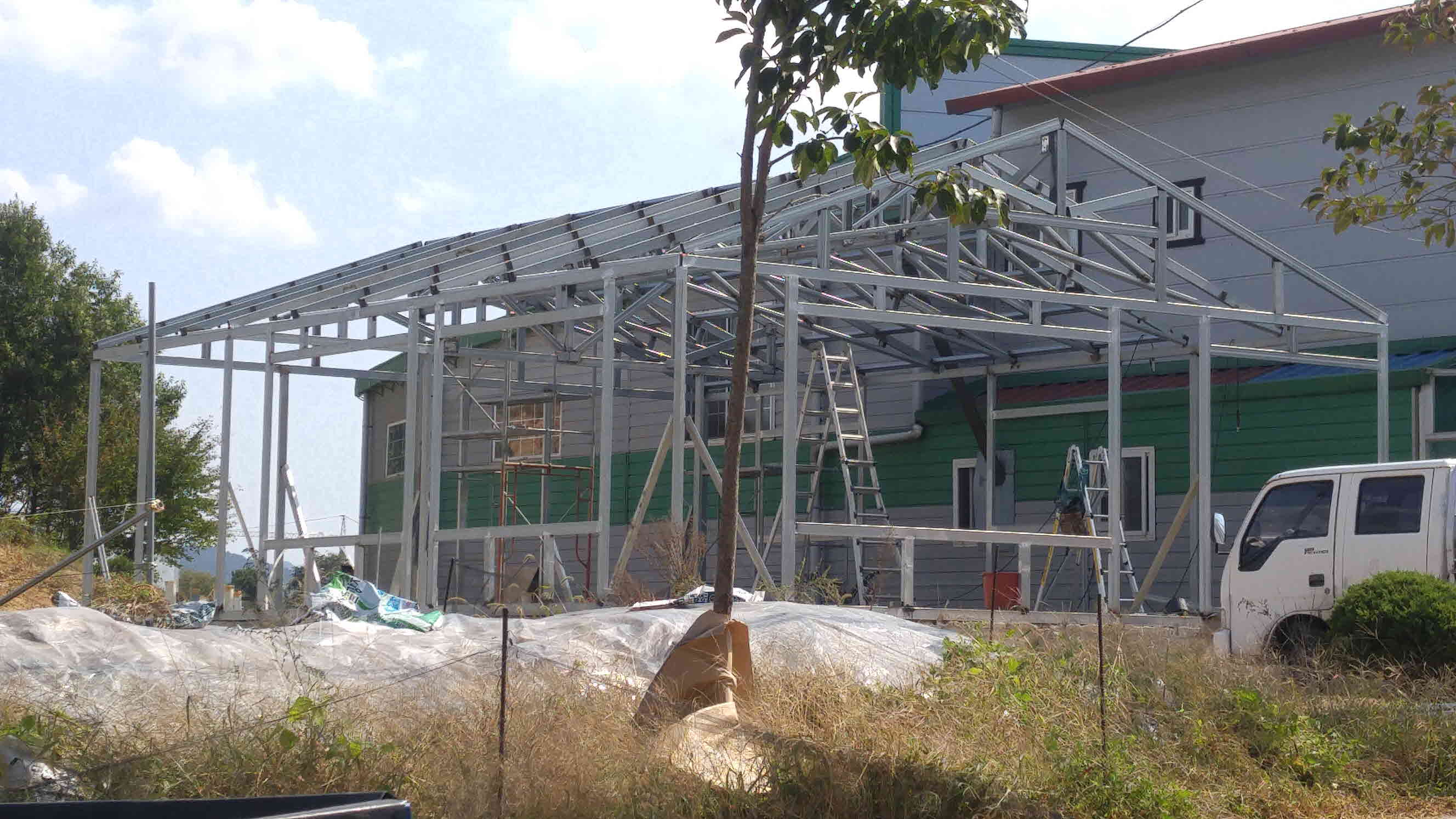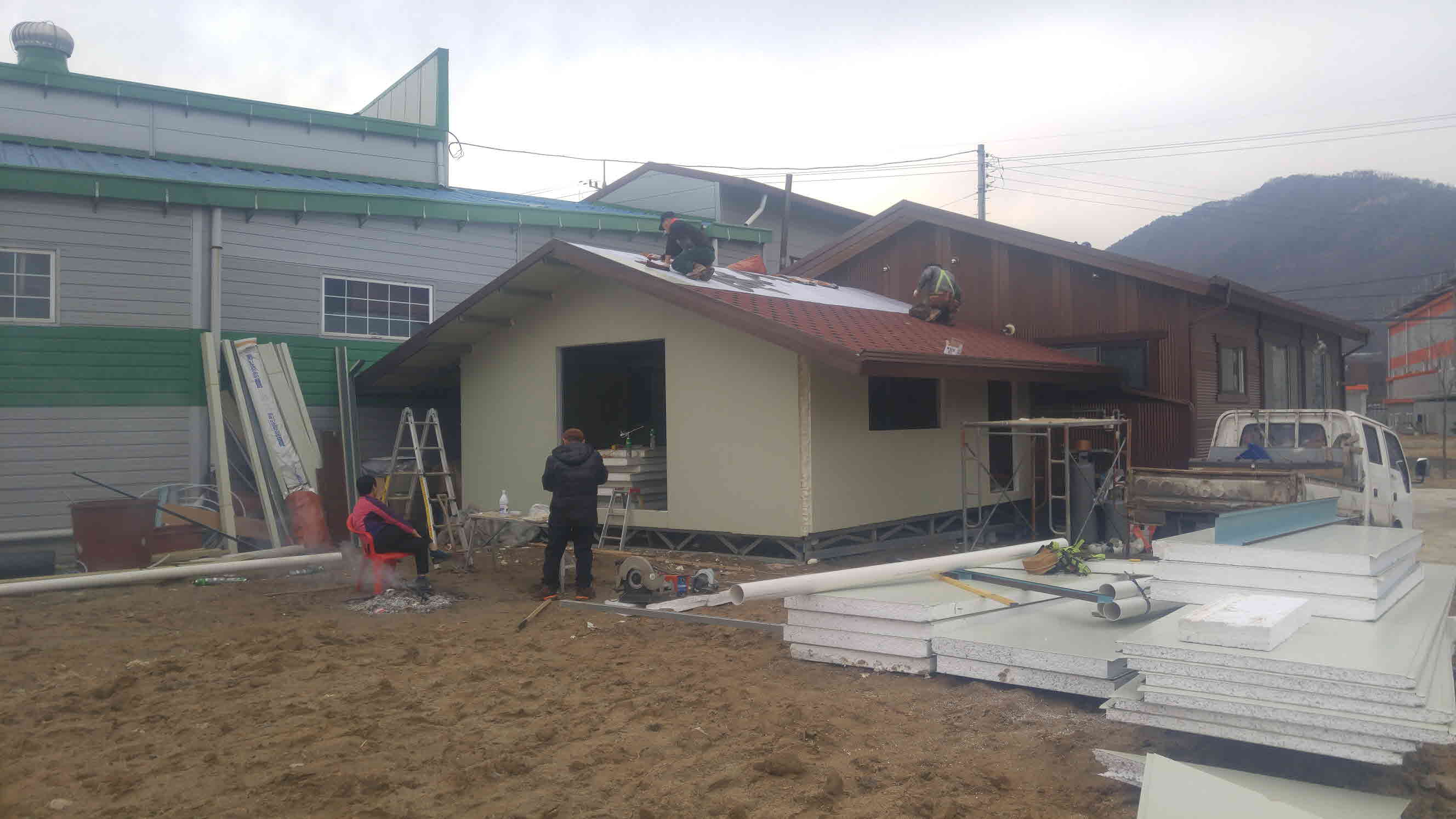 건물 뒷부분에 콘테이너 형식으로 부속사를 짓습니다.