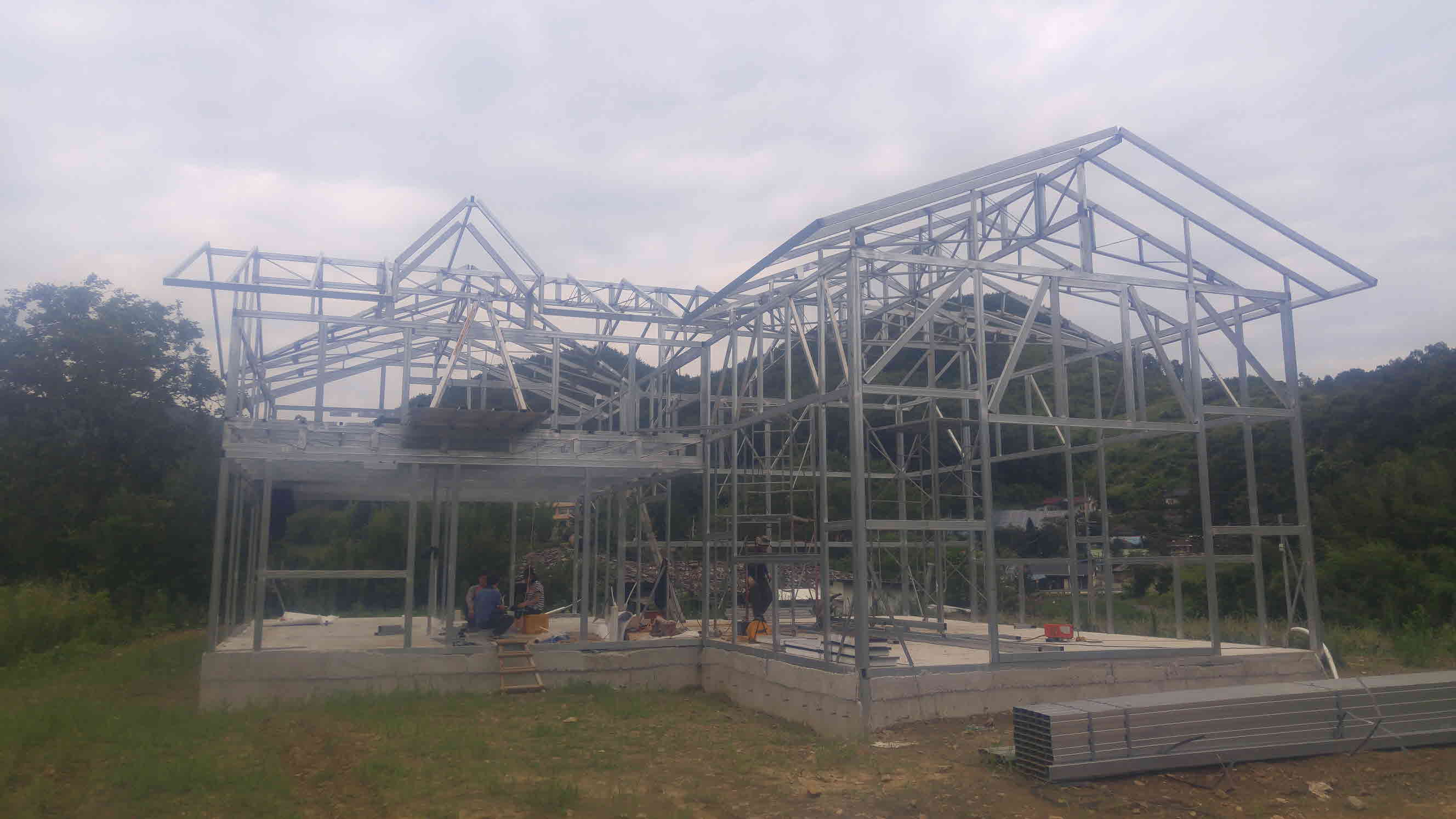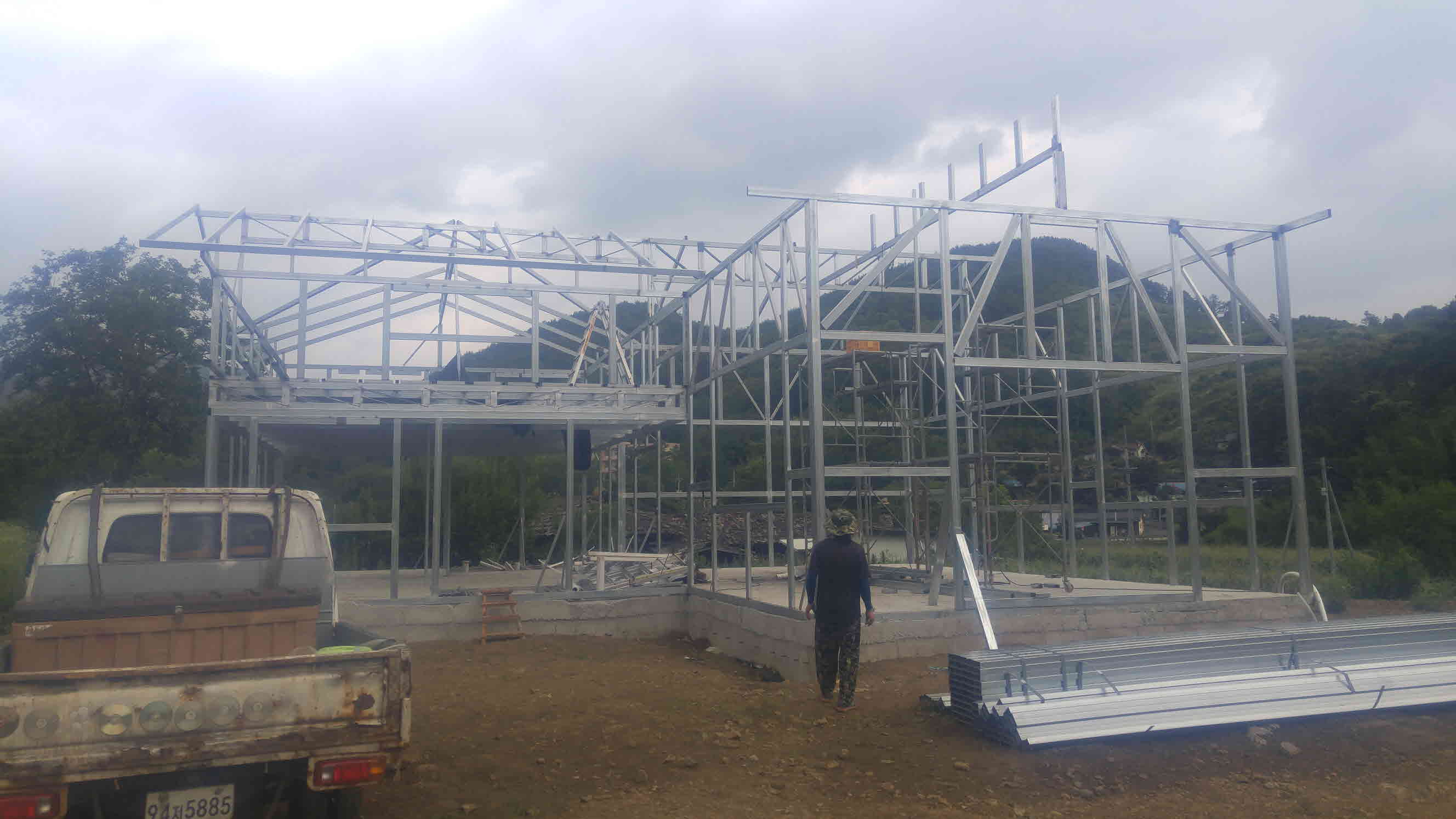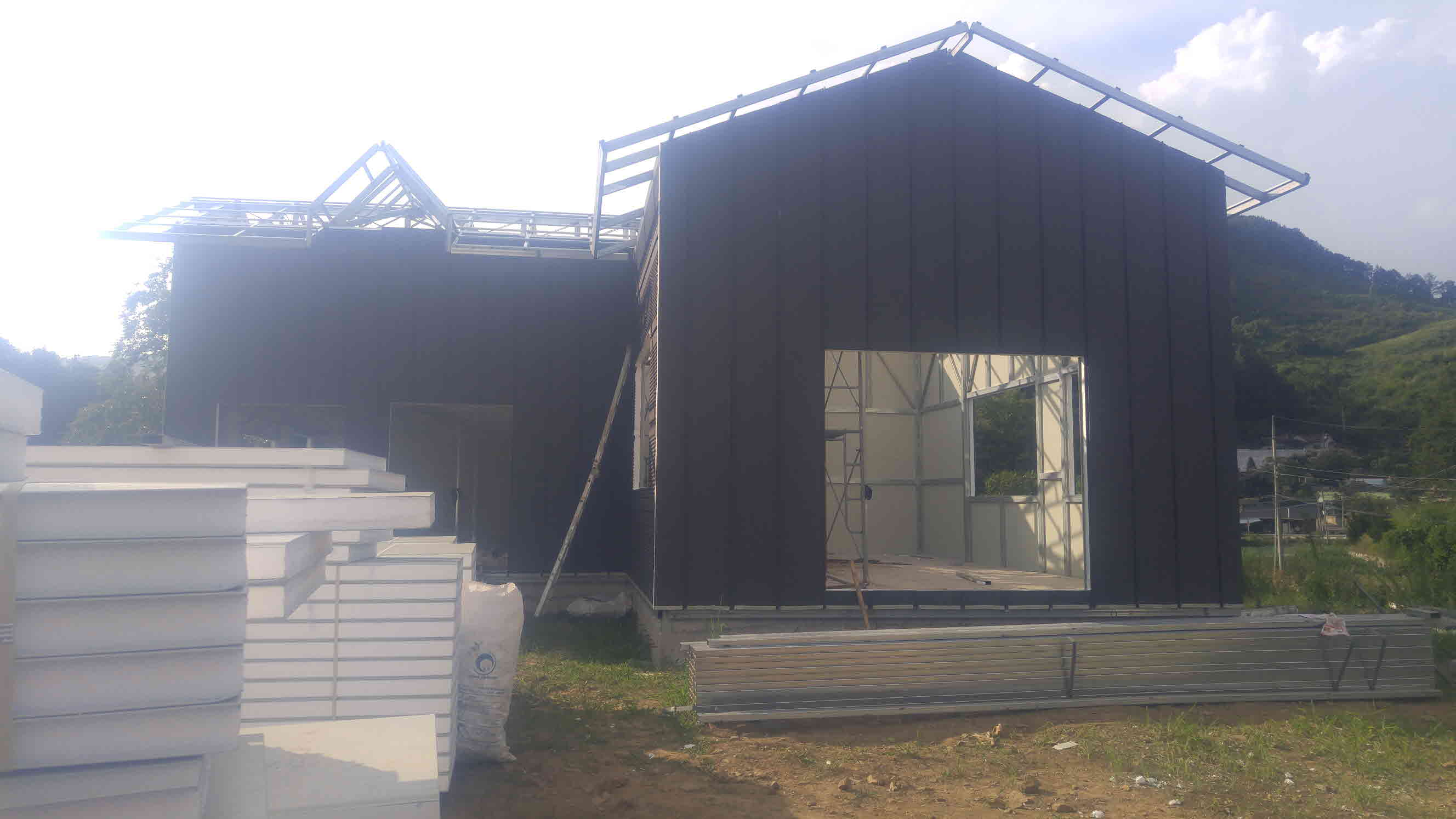 구조용 각관을 이용한 스틸구조에 패널벽 타입으로 건축을 하기로 결정하고 설계변경부터 들어갔습니다.