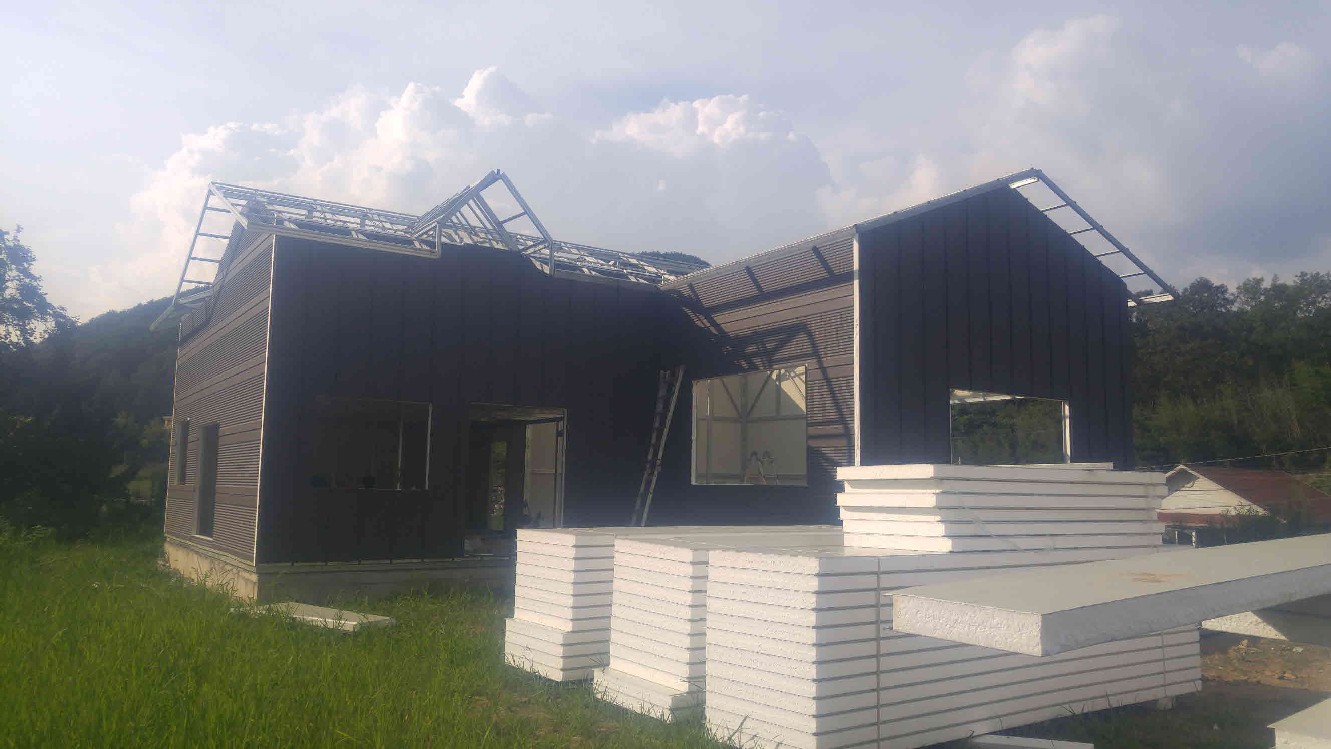 외벽은 100T EPS 징크 및 RP 타입 패널로