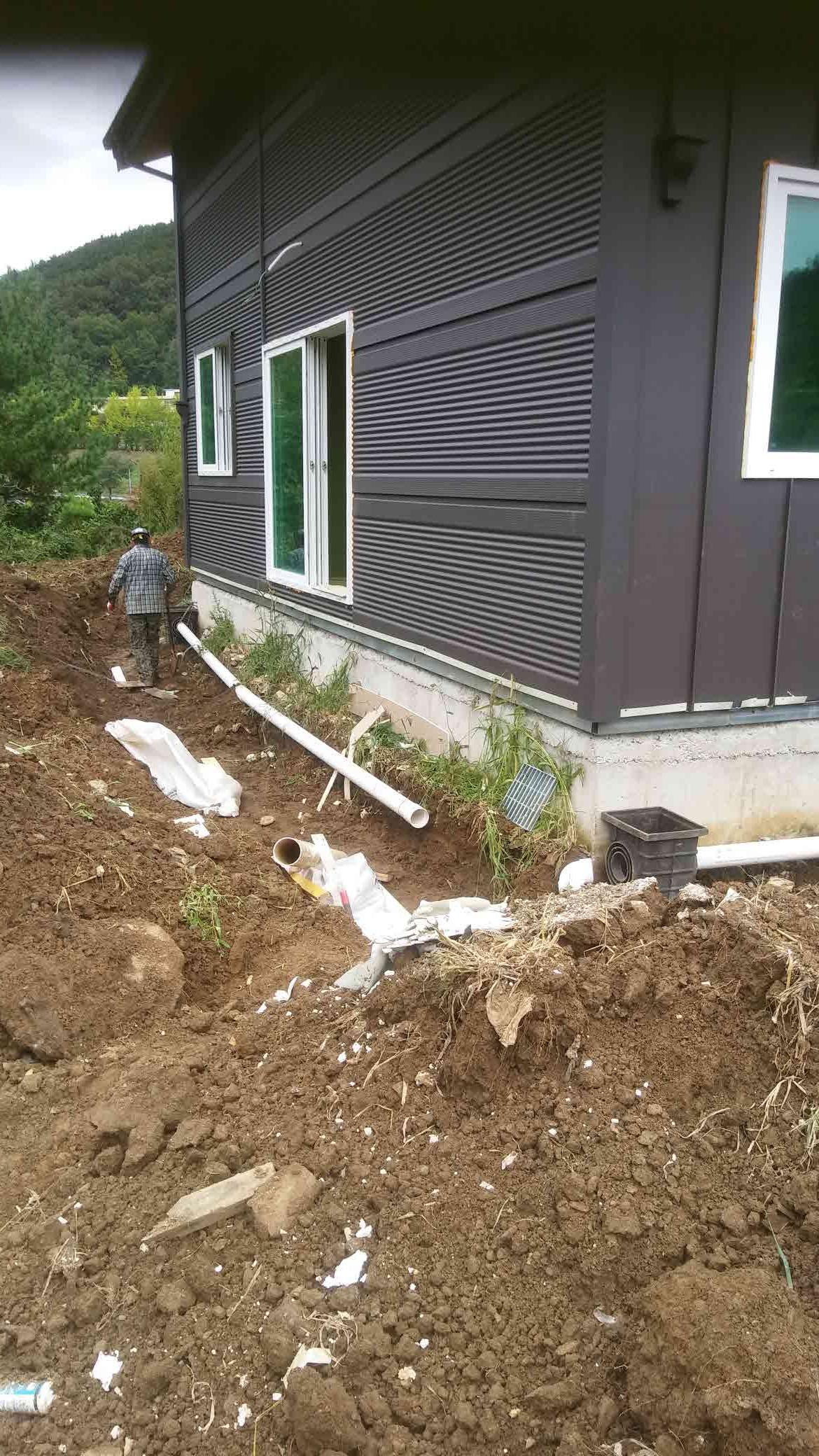 이제 외부로 눈을 돌려 정화조와 오.폐수 배관 상수도 인입과 우수배관을 살펴보기로 할까요?