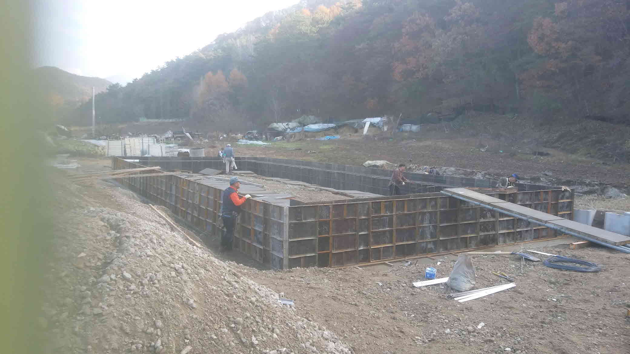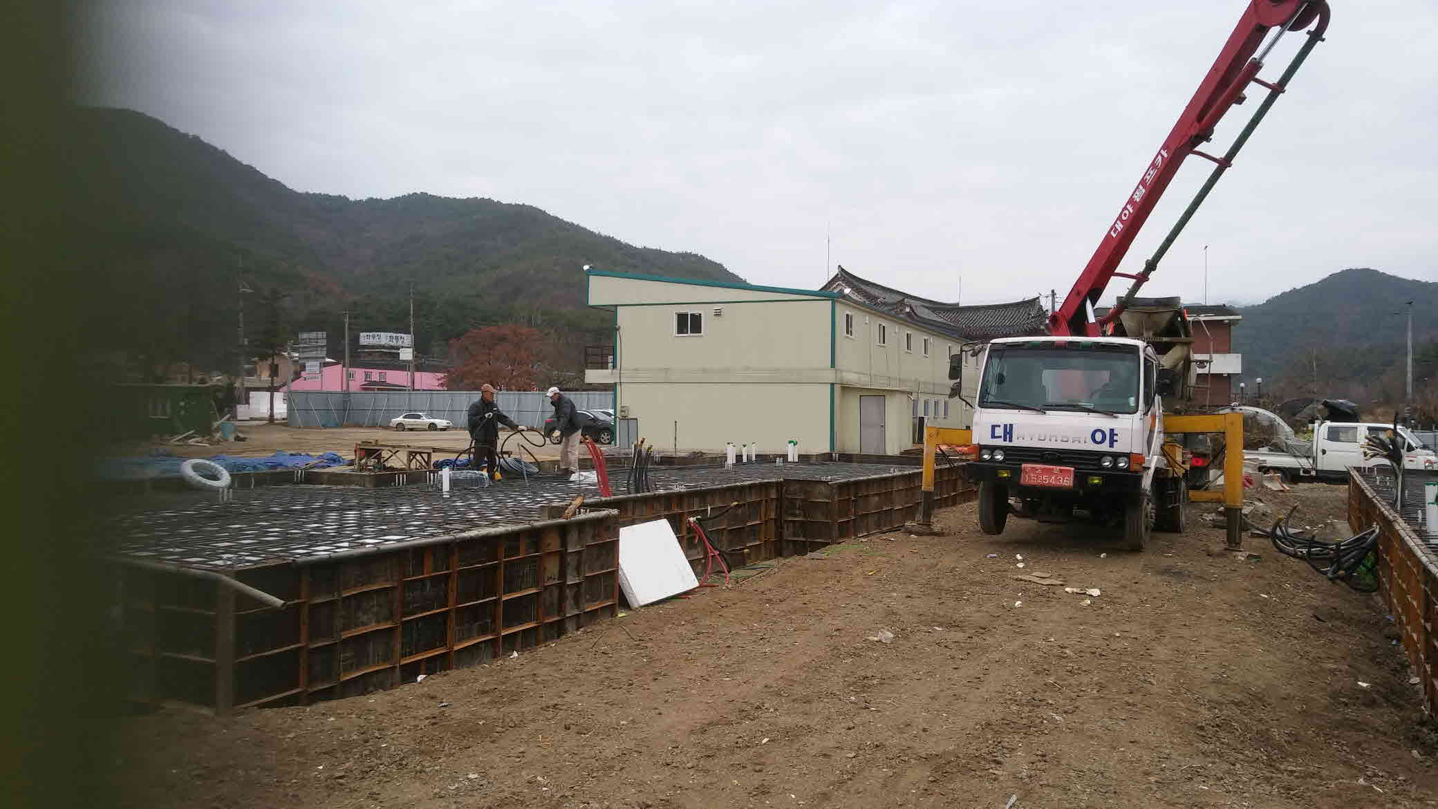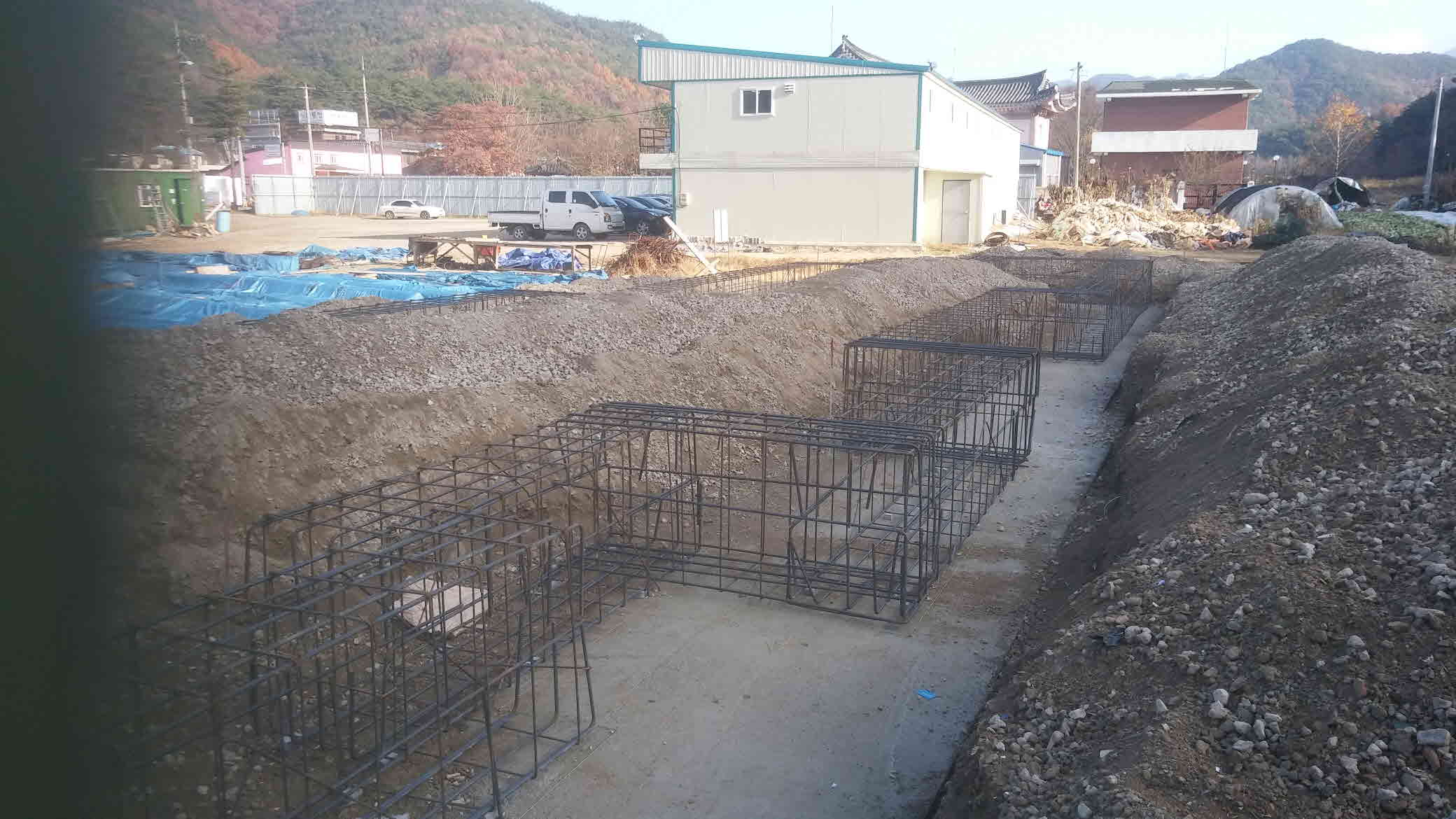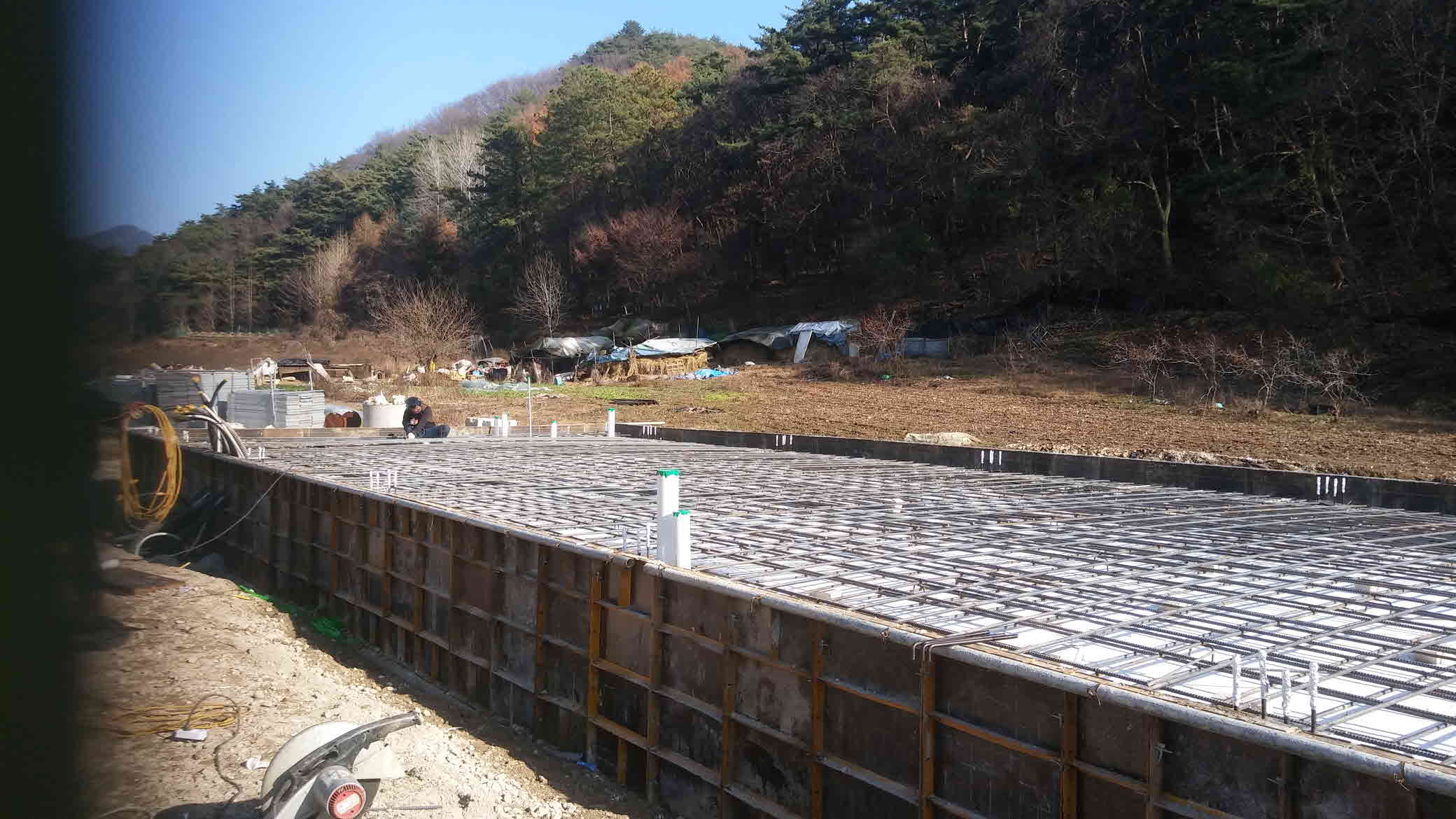 논 바닥임을 감안해 생땅이 나올때까지 걷어내고 철근 배근하고 25cm 두께의 버림콘크리트를 타설한 후