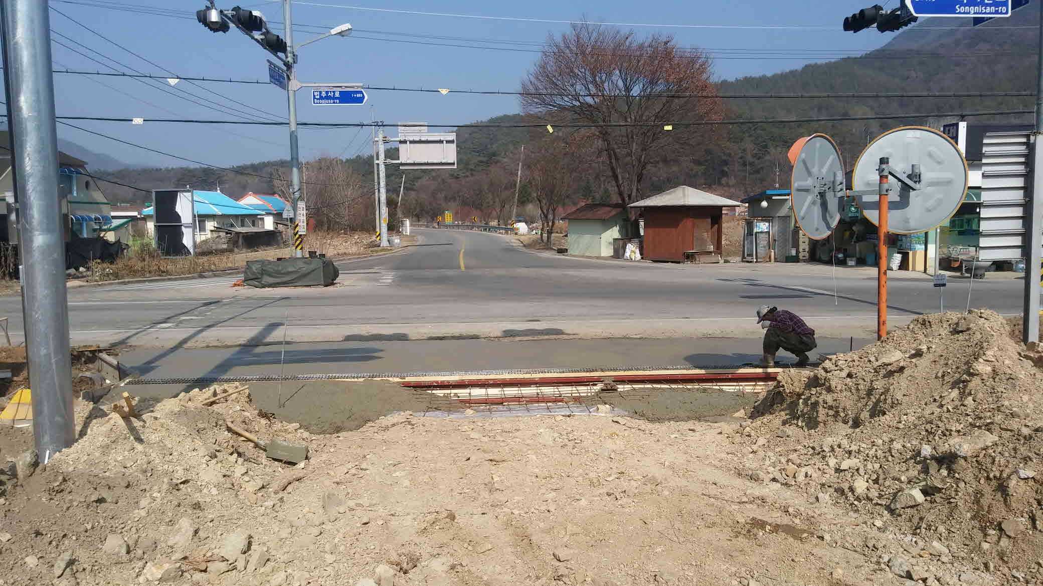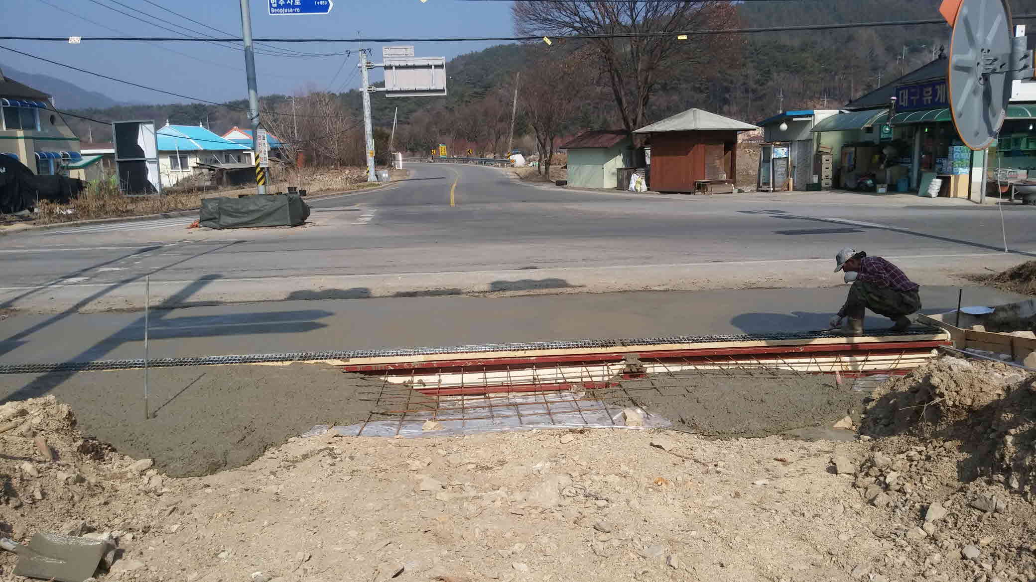 진입방향과 진출방향으로 가감속 구간을 만들고...진입로에 레미콘을 타설합니다.