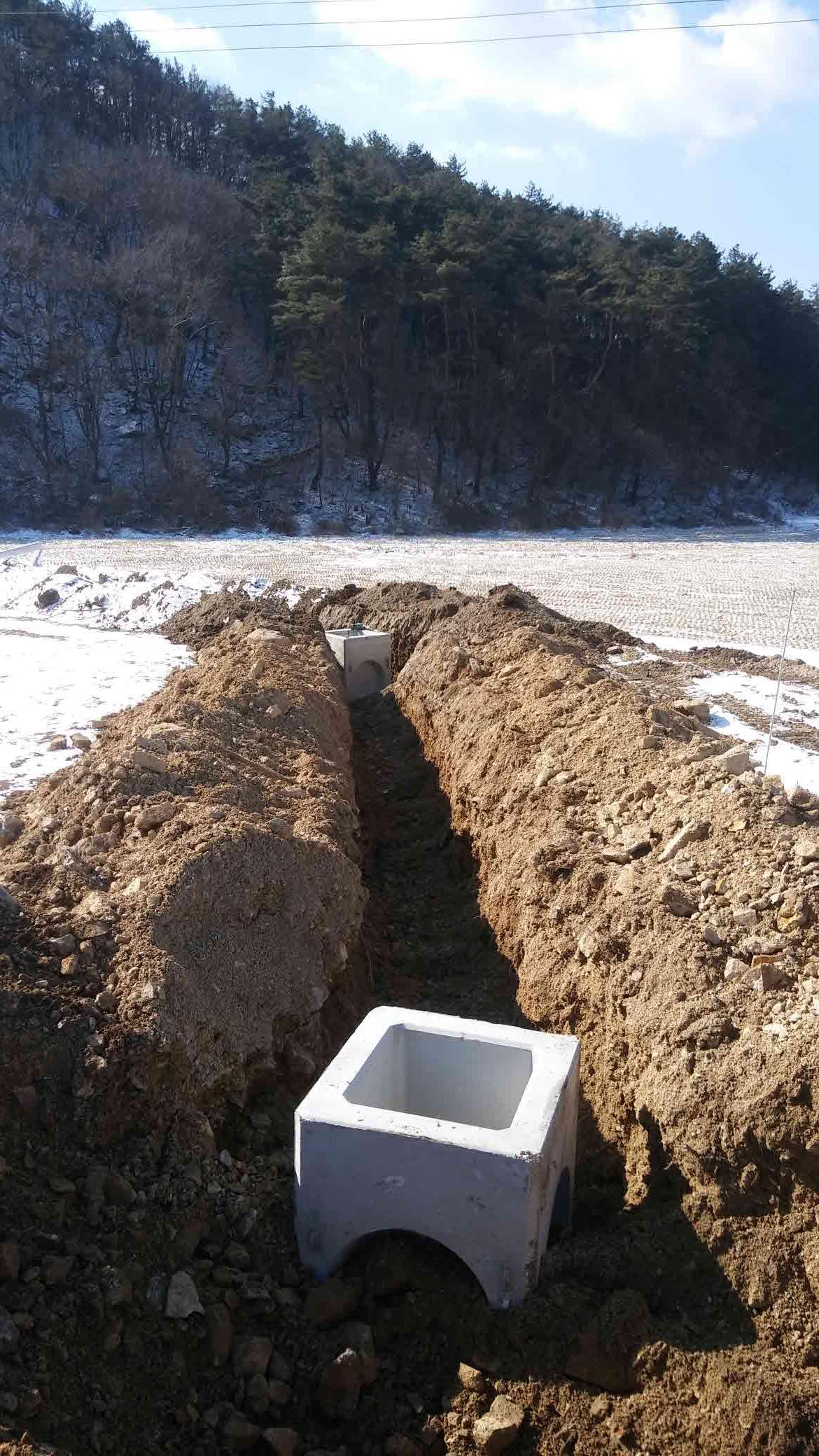 접도면과 오.폐수를 연결할 오수 집수정.. 메인 수도관 까지는 건물로부터 약 80여m...