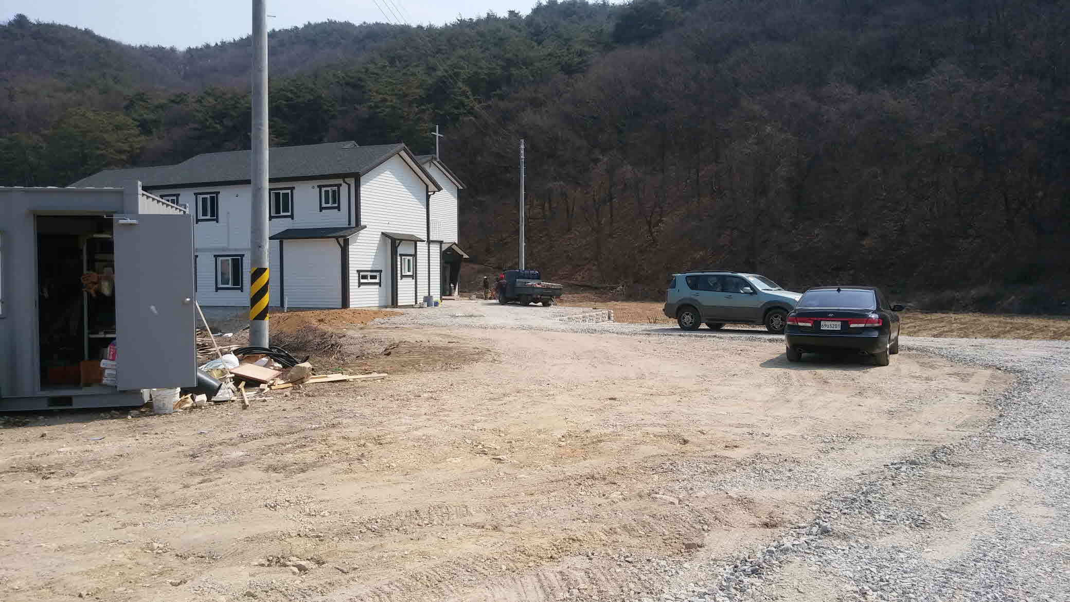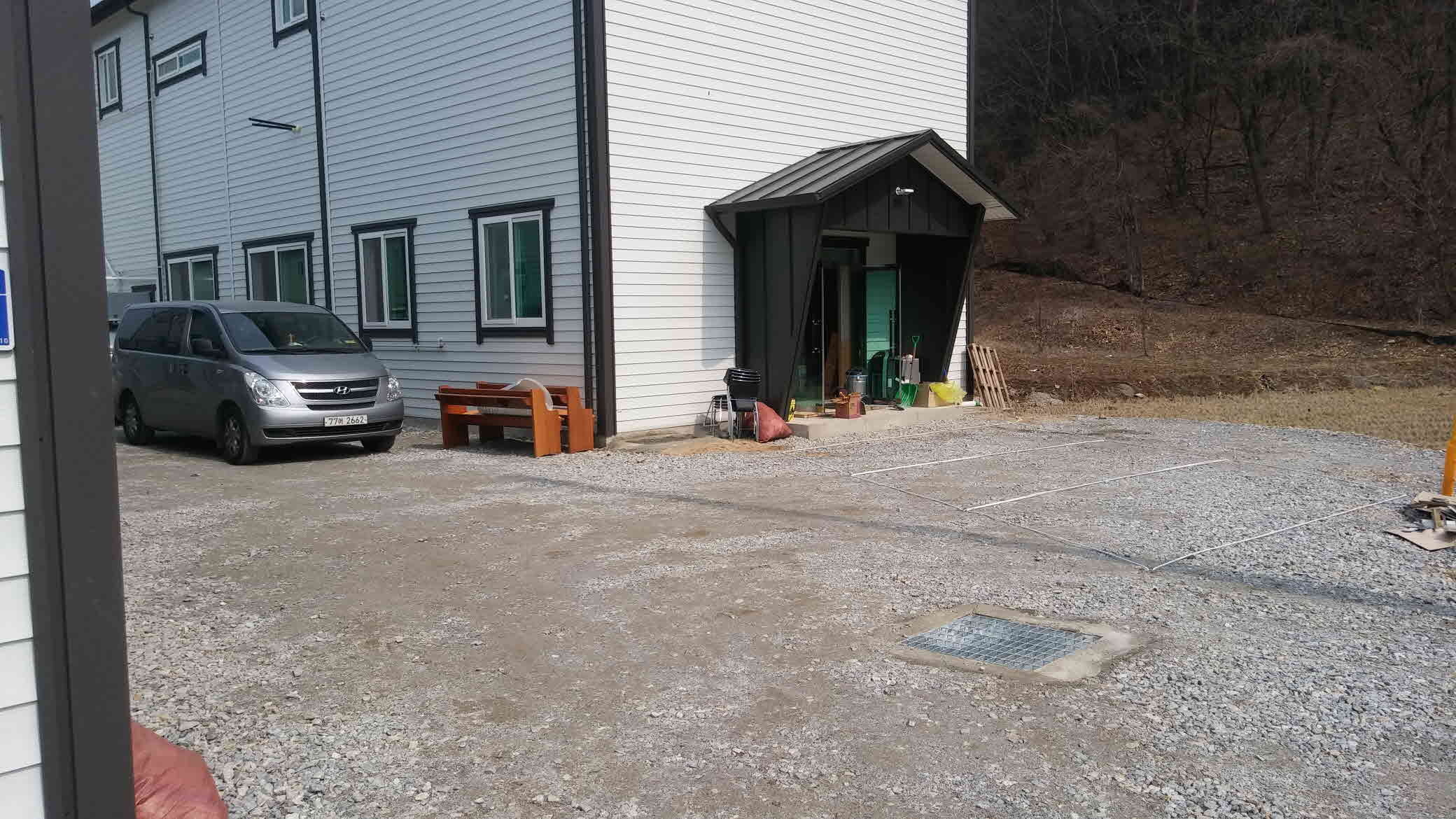 파쇄석으로 진입로를 깔아 빗길 질척거림에 대비합니다.