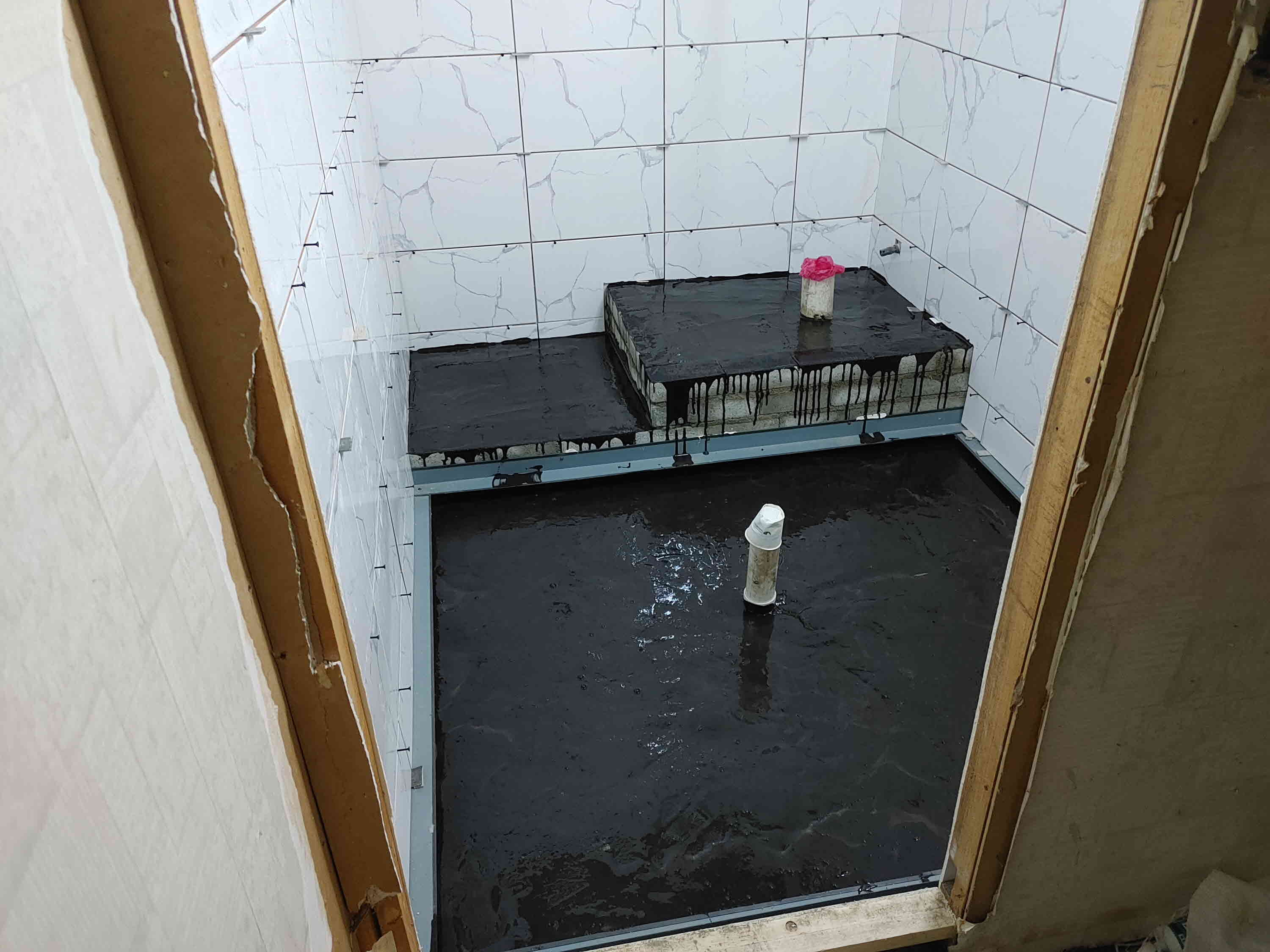 벽타일 시공하고 고뫄스로 3차방수 까지 끝낸 모습