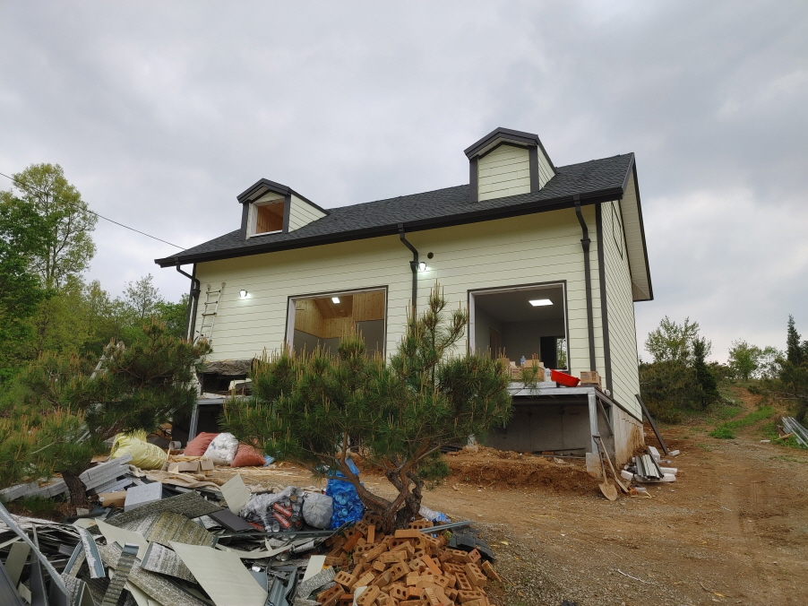 건축주가 선택한 색상으로 먼저 페인트를 칠한 후에 사이딩을 꼼꼼하게 시공하고 추후에 다시 한번 페인트를 칠합니다.
