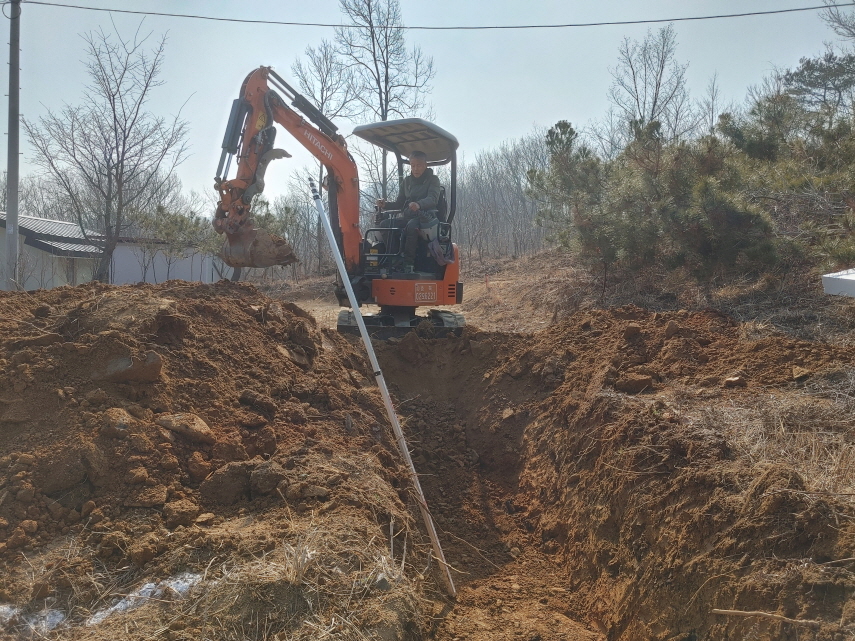 정화조 출구에서 최종맨홀까지는 150m/m 관으로 묻고 최종맨홀 이후에는 300m/m 관을 매설한다.