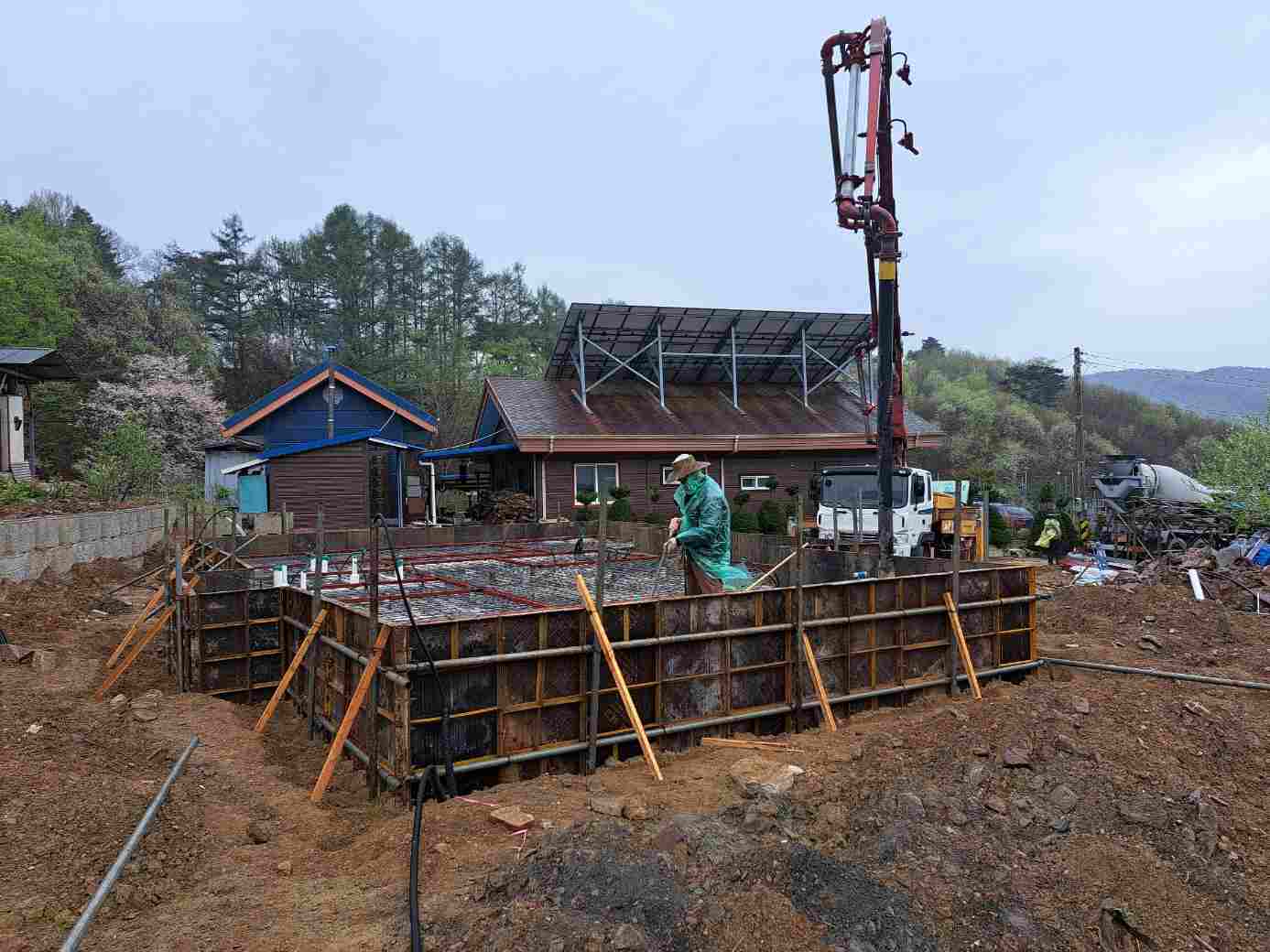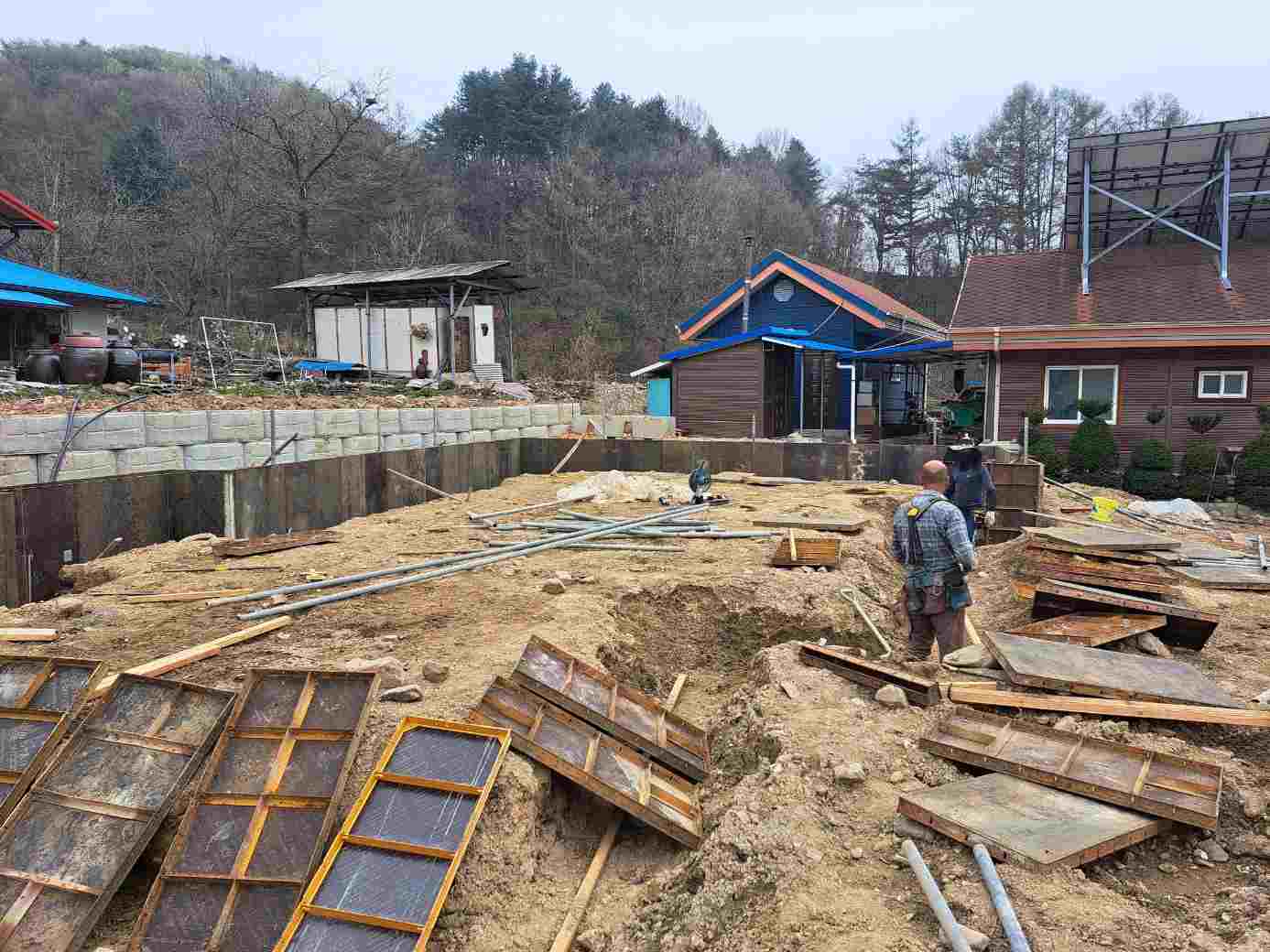 계속되는 봄비로 날이 좋아지기만 기다리다가 드디어 터파기를 하고 거푸집을 설치합니다.