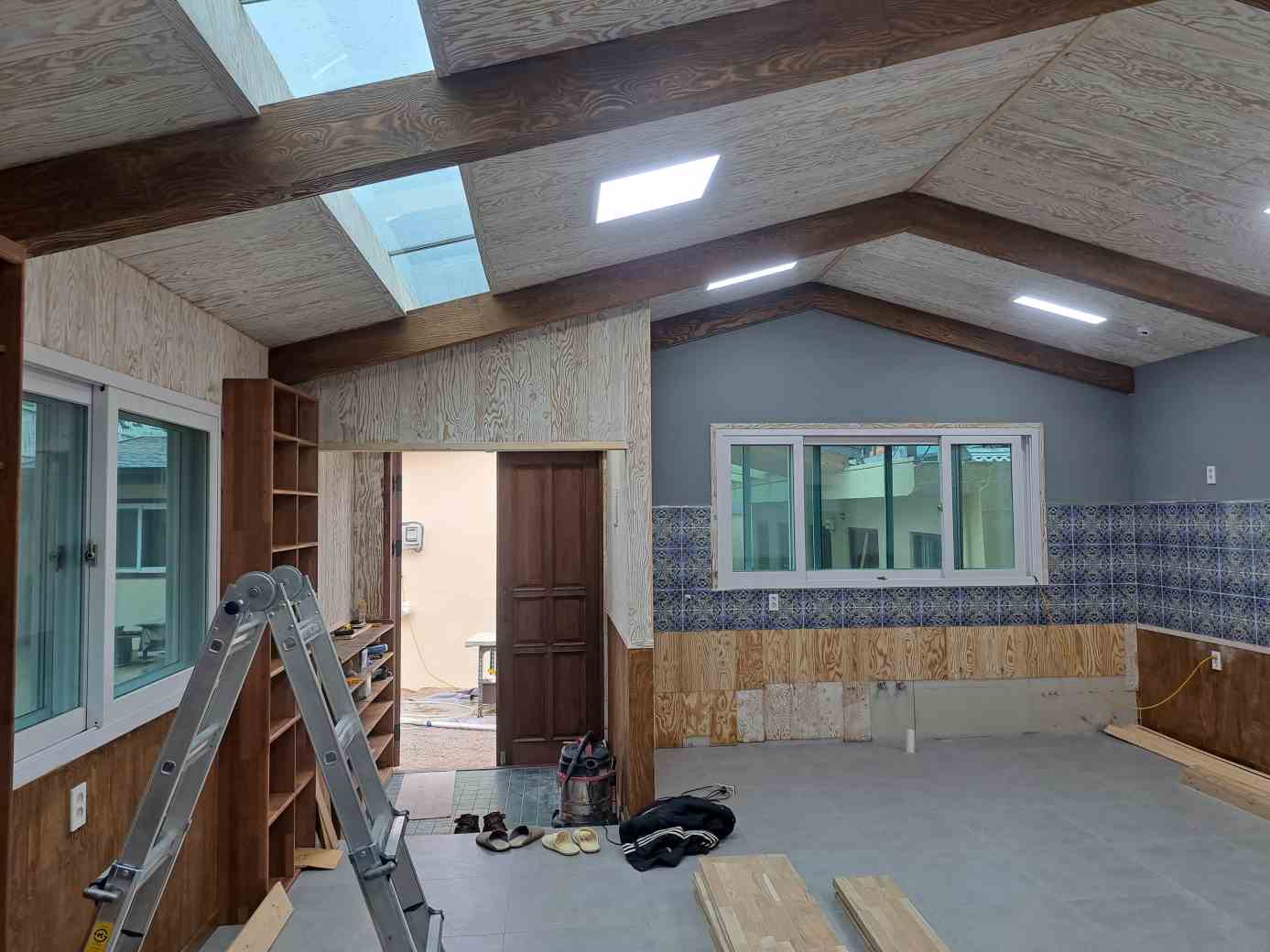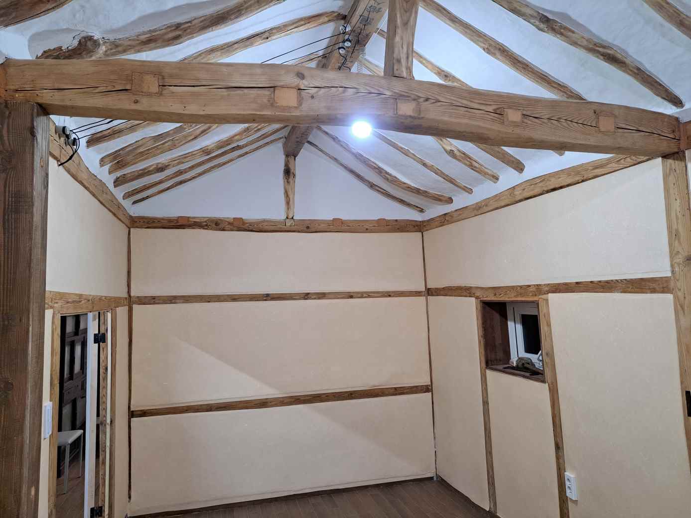 확장한 부분은 편백루바와 서까래를 걸어 한옥의 멋을 살려봅니다.
