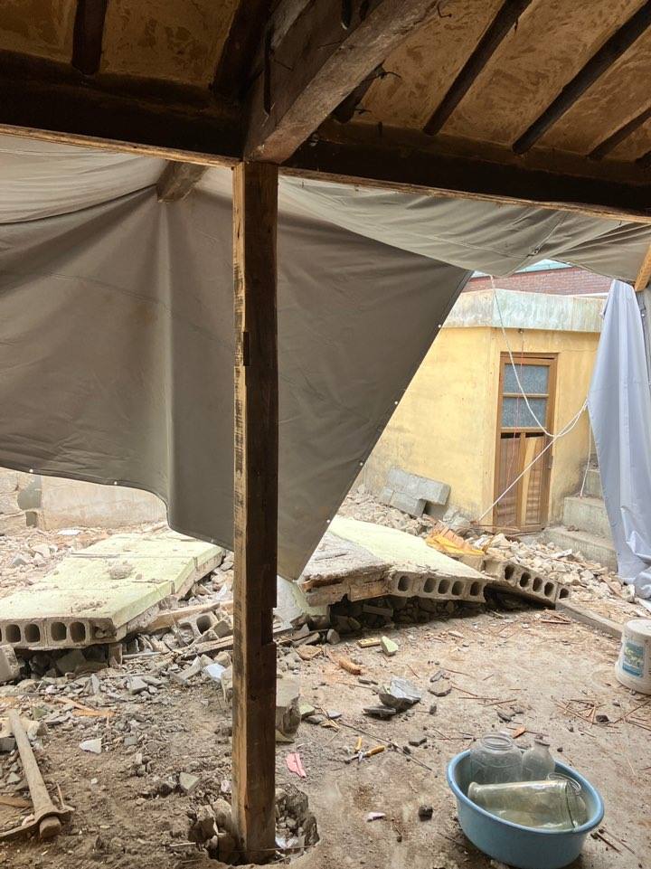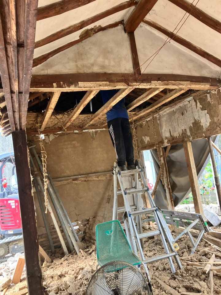곧 다가올 장마를 대비하여 큰 천막을 덮고 내부 천정과 불 필요한 부분들, 바닥을 철거하기로 합니다.