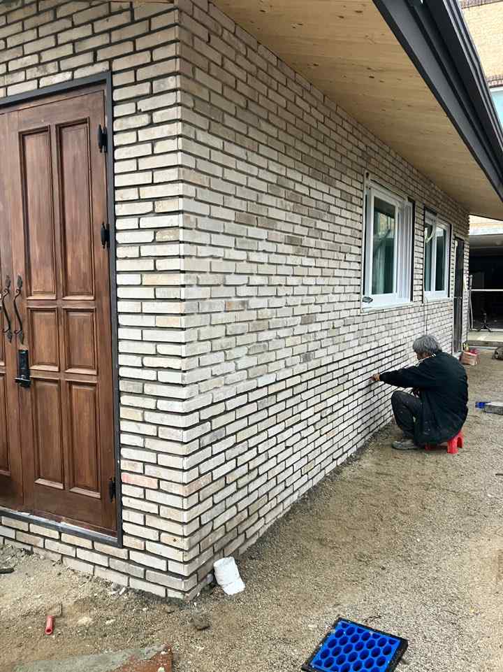 외벽에 CRC 보드로 하지 작업을 한 후....