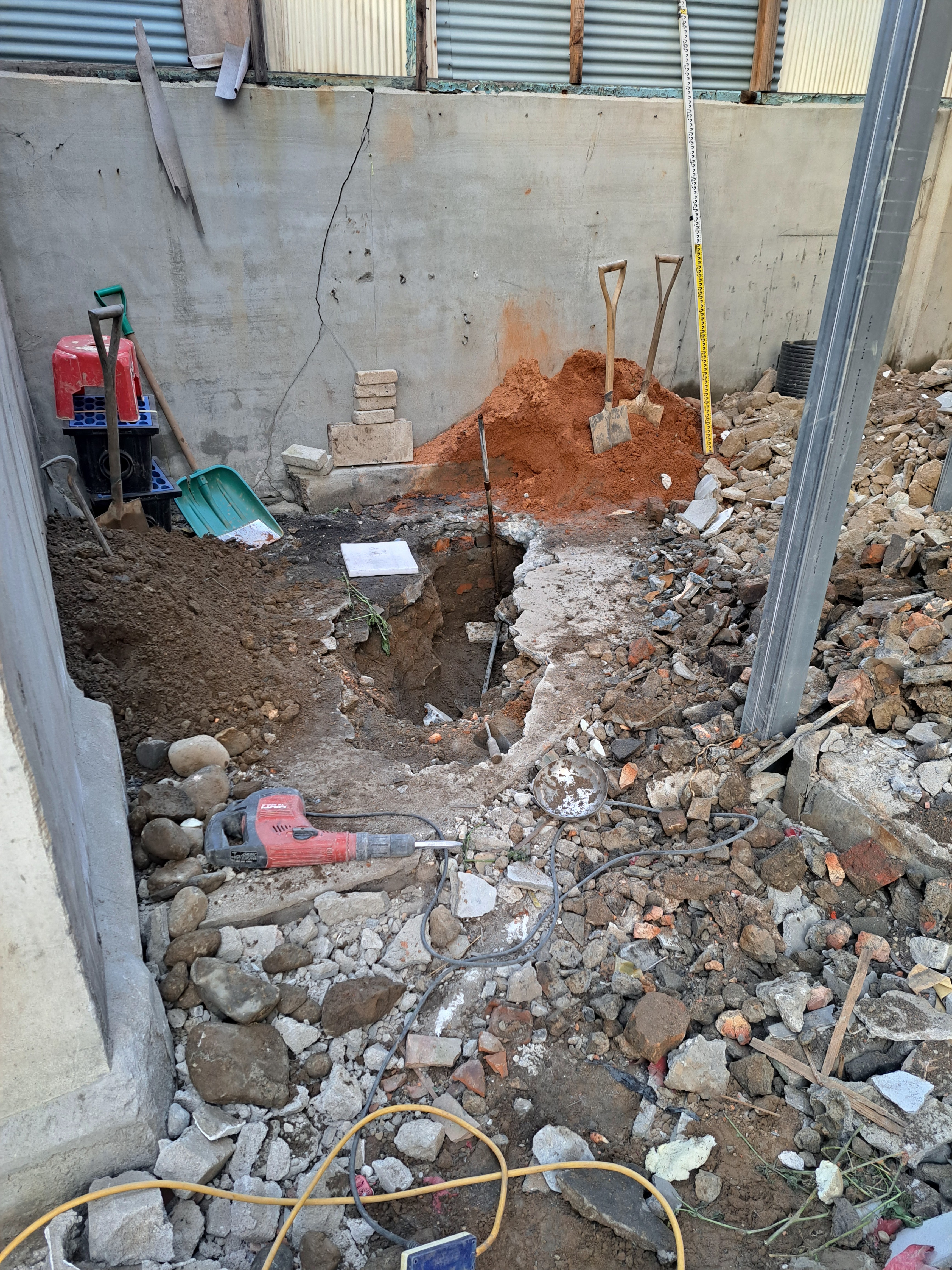 폐기물을 들어내고 상수도 인입을 시작합니다.